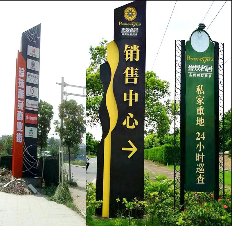 公司制作标识标牌产品包括:售楼处商业地产标识 精神堡垒 商业中心立牌 精神堡垒模型 房地产立柱 户外形象立柱 售楼部指示牌 售楼部形象牌 售楼部立牌 商场指示牌 办公楼指示牌 别墅精神堡垒
